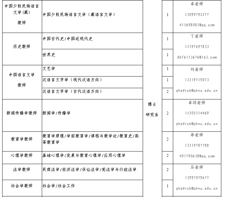 联 系 人:青海师范大学人才人事处郭老师、王老师