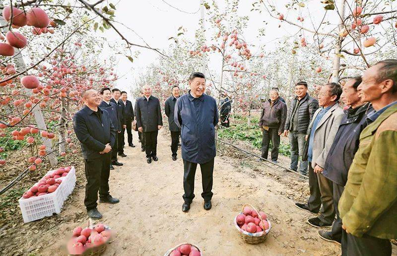 2022年10月26日至28日,中共中央总书记、国家主席、中央军委主席习近平在陕西省延安市、河南省安阳市考察。这是26日下午,习近平在延安市安塞区高桥镇南沟村苹果园同老乡们亲切交流。 新华社记者 鞠鹏/摄